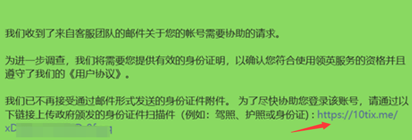 那么我们接简单分享下通过第二种方法的过程,首先需要领英客服发送一封带有验证链接的邮件(原邮件比较长,只截图部分),如下: